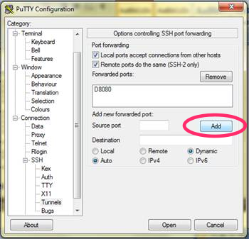 Also, never close this putty.exe application or else your ssh tunnel will close