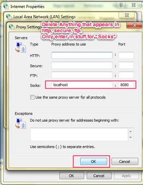 I'm assuming you're using Google Chrome. If not, go into Firefox and under preferences, there should be a tab for Connection/Network/Proxies. Make sure you're using SOCKS5 Proxy and not some other type of proxy.